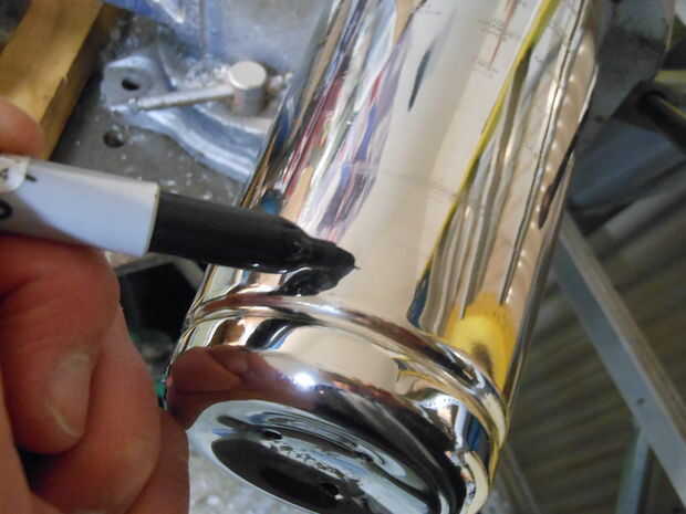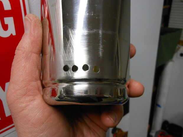 He marcado, perforado y (4) 1/8" diámetro iluminación los orificios perforados en el lado de la base de la coctelera. Una vez más, no tengo ni idea de lo que el número ideal o el tamaño de los orificios de iluminación sería. Lo hice sobre qué geniz en HomeBrewTalk.com lo hizo con su coctelera (ver el primer enlace en la página de la introducción). También podría terminar creciente número o tamaño o ubicación de estos orificios.