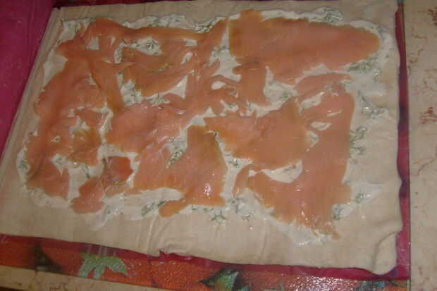 Colocar el salmón ahumado encima la mezcla de mayonesa.