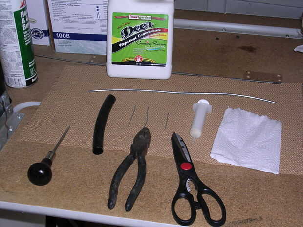 mi esposa y yo tenemos problema de ciervos en nuestro patio. Les gusta especialmente Hosta, begonias y sedum. Tengo el huerto cercado y gran parte de los lados de las yardas, pero no la parte delantera y trasera de la yarda. Conseguí esta idea de un catálogo de jardín que estaba vendiendo 25 frascos de aceite de ajo por $19.95. Necesitaría por lo menos 50 por eso busqué algo que tal vez más barato y más fácil. Tenía manguera de suministro principal de riego de goteo de media pulgada y ciervos regulares repelente al que había que diluir y pulverizar sobre las plantas. Se quemaron algunos y tuvo que ser vuelven a aplicar después de cada lluvia. Quería algo que fuera persistente y persistir y ser replentishable.
