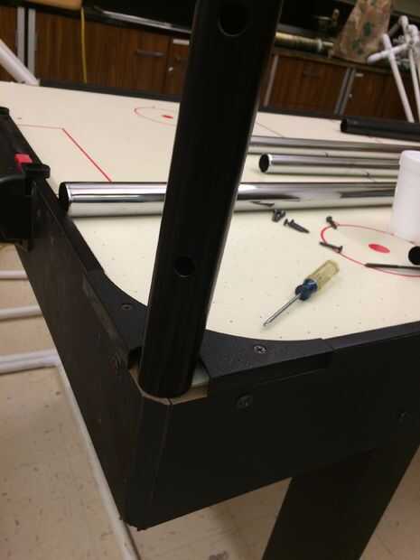 (esto no es una mesa de Air Hockey, Estáis avisados).Es muy fácil de hacer, barato y puede hacerse en media hora.Encontré una muy buena tabla MDF para la mesa, que tienen una superficie lisa por un lado, era un poco más caro que un tablero MDF regula