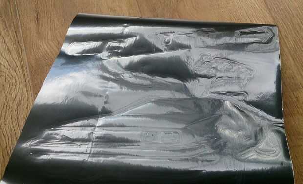Hice mi plantilla la manera fácil como (apenas) puede ver en la foto con el stickerfoil de vinilo negro, después de pelar el loos negativo con el gancho de arte coloca la plantilla sobre el vidrio con el transferpaper.