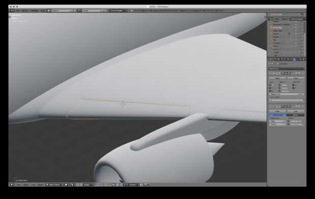 Exactamente igual que lo que hiciste para cortar el timón y elevadores. Sólo alinear los lazos del borde con los planos y separar hacia fuera. Luego rellene el interior secciones y agregar algunos bucles de borde (proximidad) para endurecer los bordes.