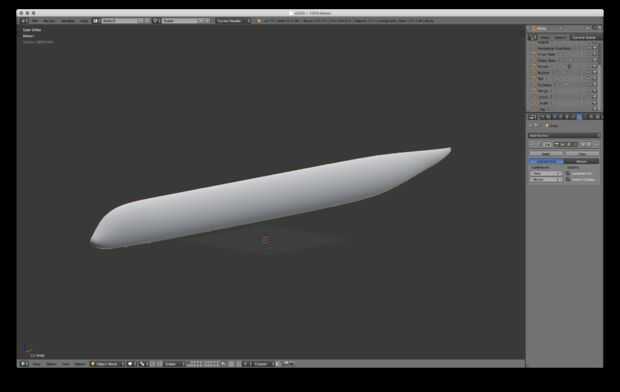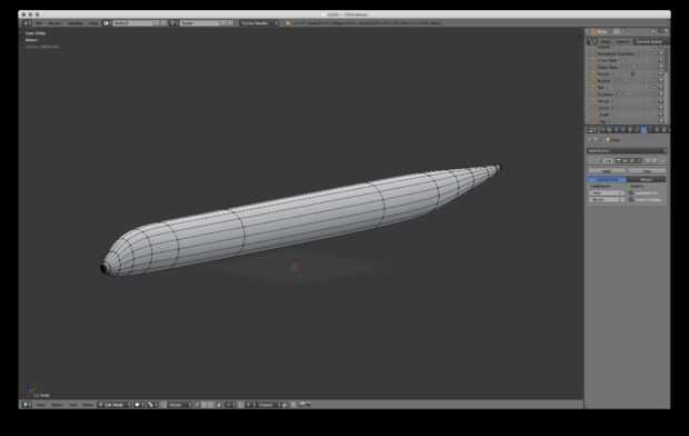 El cuerpo comienza con un círculo simple con 16 vértices. Simplemente lo extruye a lo largo de los planos, asegurándose de que coincide con los planos en todos los lados. También estoy usando el modificador de la Superficie de subdivisión así como Sombreado suave para dar una superficie agradable al modelo. También he utilizado esto en la mayoría de las otras partes del avión como las alas, cola, motores etc..