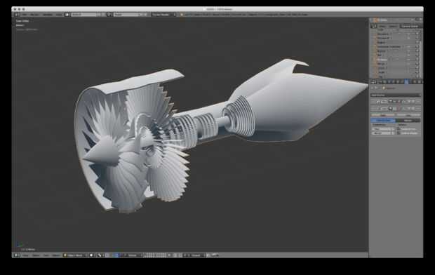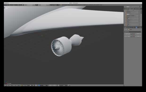 Esta parte puede parecer un poco desalentador pero su realmente no es tan difícil. Empieza por modelar una aspa del ventilador. Recuerde, curva alrededor como que sale del centro y se un poco más grande también. Luego utilicé la Herramienta Spin en Blender duplicar todo el centro del motor de 22 veces. Entonces el cono (cono pequeño en la parte delantera) del modelo utilizando un círculo, que saca hacia atrás hasta el final del motor. Entonces utilice la misma técnica para modelar los álabes. Acabaremos creando el 'exterior' que alberga las cuchillas. Use un cilindro para eso.