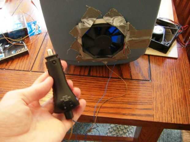mi lugar de trabajo es bastante caliente, y todo lo que tengo para ayudar a enfriar abajo durante el día es un ventilador pequeño de 4" y un sistema de soplador industrial aspirando el aire caliente del edificio principal.Cansado del calor, empecé a