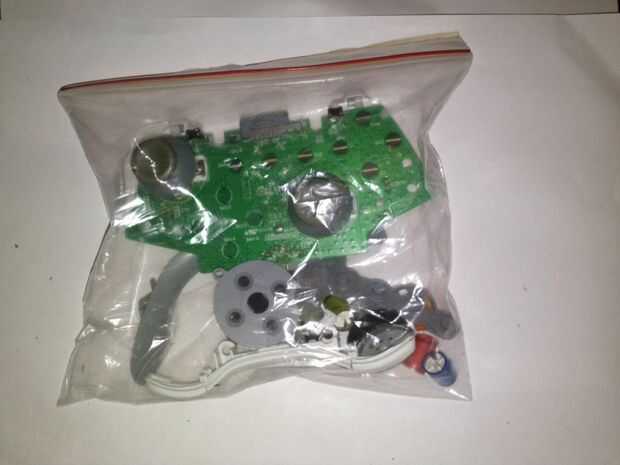 Colocar todos los bits que puede caber en una bolsa de sándwich para no perder las piezas pequeñas, tendrá que colocar las cáscaras de gran controlador principal en otra bolsa.