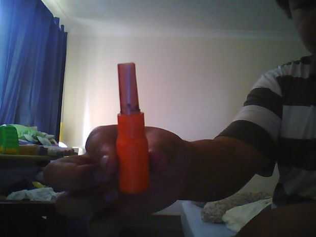 Paso 1:Esta es una intructable bastante fácil y también mi primera, así que aquí tienes!Paso 2: sólo tienes que encontrar una banda de goma grande y ponerlo en el doble tiro como este.Paso 3:ahora se hacen a cuando abres el doble tiro se cerrará por