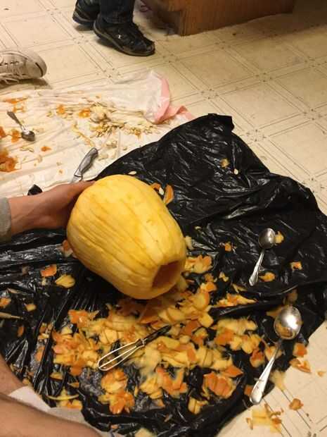 Medir octavos o semicorcheras en la calabaza y cortar cortes poco profundos (no pinchar a través de todo el camino!) todo el camino alrededor de la calabaza y retirar la piel con el pelapapas.