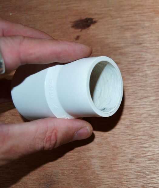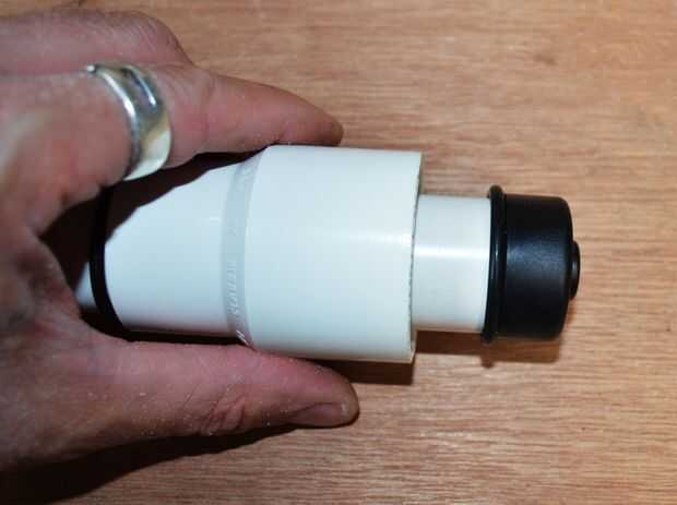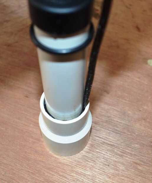 3. una vez que el pegamento y silicona se seque, pegamento en el acoplamiento de 32 mm a 25 mm para la cámara de aire