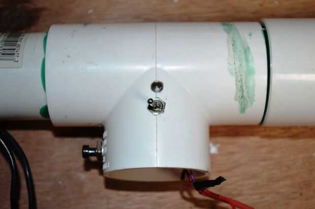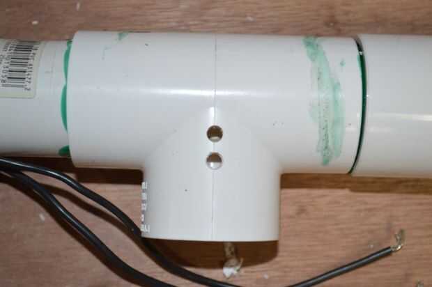 1. Taladre un orificio en la parte superior de la sección del mango de la sección en "T" y otro por debajo de ella. La cima uno se utilizará para el LED y la parte inferior para el interruptor de seguridad. Obviamente, asegúrese de que los agujeros son más grandes para acomodar a cada elemento.