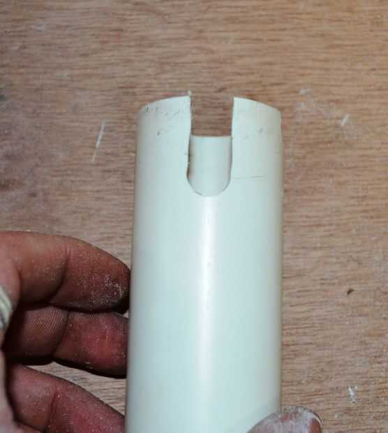 2. a continuación, modificar el tubo en un extremo como se muestra. Recuerde que este va a ser su mango por lo que deslizan en la parte inferior de la sección T. Tienes que hacer un par de mods para permitir que los interruptores se deslice a través de la tubería.
