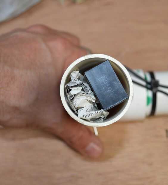 3. Pase los cables y las baterías a través del tubo y el pegamento en su lugar.