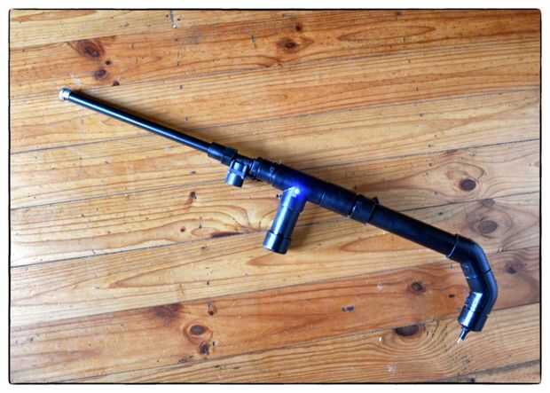 - Añadiendo una bomba al final es realmente una buena manera de hacerlo portable. He hecho esto en otras versiones (revisa el debajo de las fotos) y funcionan realmente bien. Una desventaja es que su brazo empieza a dolor debido a todo el bombeo que tienes que hacer! También, tienes que modificar el acoplamiento real de PVC para permitir que la bomba se adapte correctamente y esto se convierte en un punto realmente débil en el lanzador. Tuve que añadir un montón de cola sólo para asegurarse de no disparar hacia fuera a mí! La bomba que usé también se rompió cuando estaba haciendo los últimos retoques que hizo derramar. Las mejores bombas para utilizar son los que inflan cuando están ambos empujando y tirando del mango.