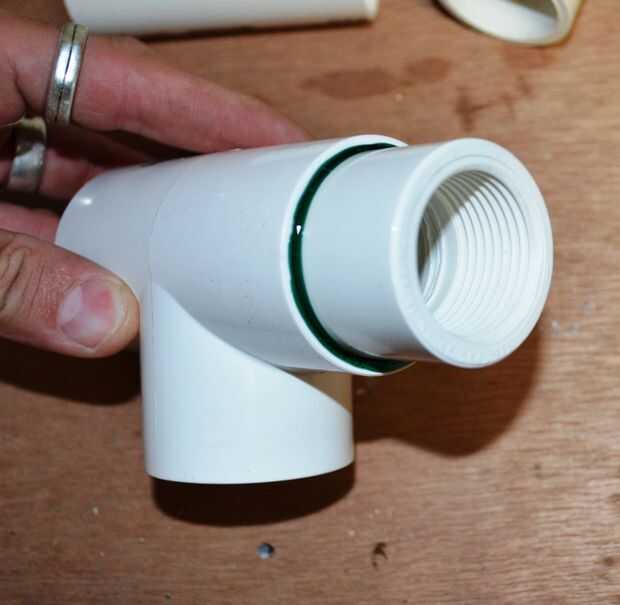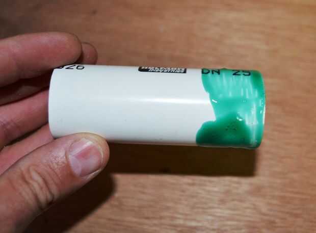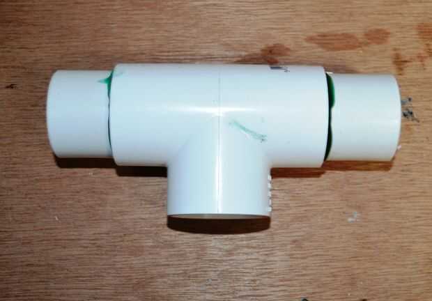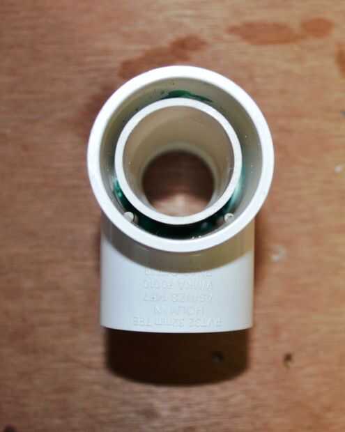 Nota - antes de pegar - Asegúrese de que el trozo de tubo de 25 mm quede con el otro extremo de la sección de T. Si es corto entonces usted necesitará un pedazo más grande de la pipa. Si es más largo, medir al ras con el tubo T y la corte
