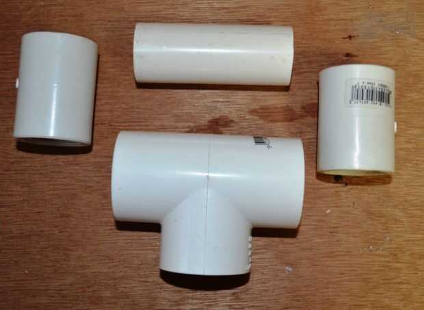 2. Corte una pieza de 150mm de tubería de 25mm. Este trozo de tubo se va por en medio de la sección de T.