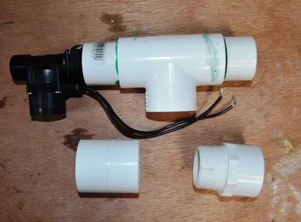 2. a continuación el tornillo en un extremo de la válvula de la sección en "T" el extremo hembra del acoplamiento macho roscada 25 mm 32 mm asegurándose de que la cinta de plomería se utiliza.