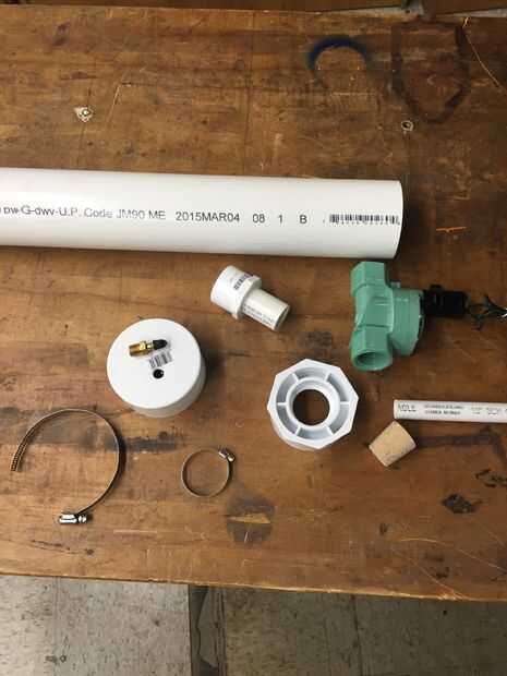 La cámara está hecha de mucha tubería de PVC más grande que el cañón. Esto requiere un tubo de PVC de 3 pulgadas. Esto tiene el aire en que para la compresión que hace la barra de trabajo. En la parte inferior de la tubería es una tapa con un agujero en el centro, con una boquilla de aire de la bomba en la cámara. Puse cinta alrededor de la cámara para reforzarlo, es totalmente opcional.