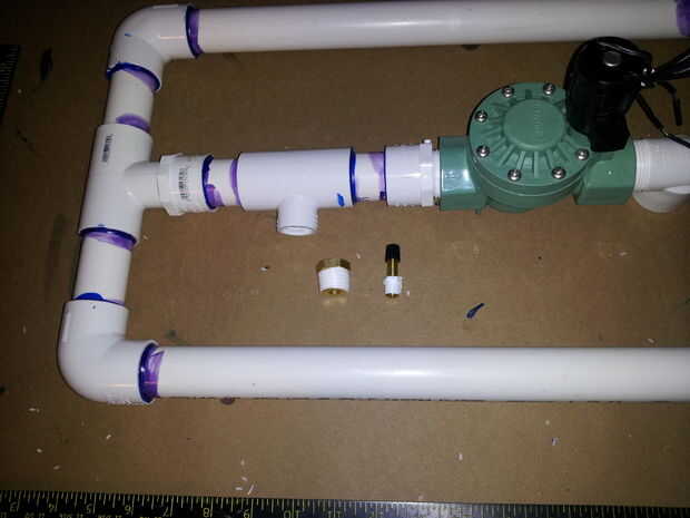 Todas las conexiones roscadas se deben grabadas para evitar fugas. La cinta de teflón que utilizamos es ya sea blanco o amarillo. La cinta amarilla se suele utilizar para la pipa de gas y el hierro mientras que la cinta blanca es de uso frecuente para instalaciones de tuberías de agua y cobre. Aire es un gas que podría inclinado hacia el amarillo de la cinta. Pero yo he usado ambos y ambos funcionan muy bien incluso a muy altas presiones, por lo que podría dejar precio dictar: cinta blanca es un tercio el precio de amarillo.