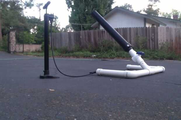 Se trata de un lanzador del cohete del aire comprimido. Utiliza tubos de PVC común y accesorios que cualquier persona puede tener en sus manos.Puede lanzar cualquier cosa de dardos Nerf a los cohetes caseros. Tengo todas las partes de un local es par