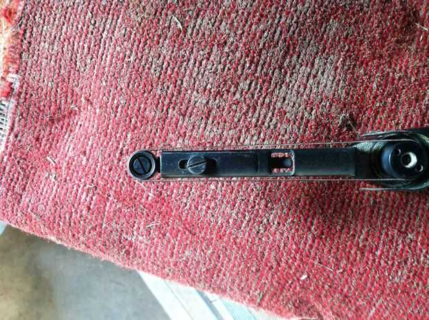 5) si correa paseos al lado de la rueda delantera, puede ajustar el brazo doblándolo ligeramente de una forma u otra hasta que el cinturón de paseos en medio de la rueda.