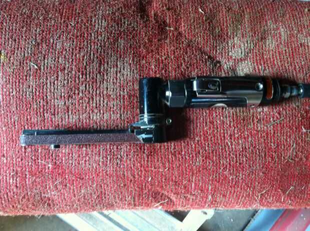 Utiliza correas de 10 mm x 330 mm disponibles en las tiendas de Campbell Hausfeld. Compro 80 grano o grano 120. Tengo 4 amoladoras de banco, varias Rectificadoras de disco de aire y sanders. Yo uso este muy a menudo y lo recomiendo.