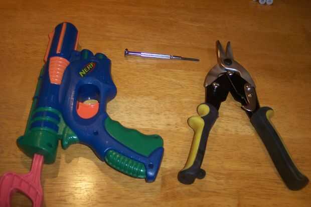 Primero va a hacer el mod del restrictor de aire. Todo lo que necesita es un destornillador que puede encajar la pistola, un par de tenazas y la pistola.