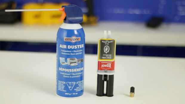 Todo lo que necesitas es una lata vacía de aire, algunos epoxy metal líquido y una válvula de tanque similar a lo que se utiliza en un neumático de la bicicleta. Usted será también necesario un pedacito de taladro y 3/8".