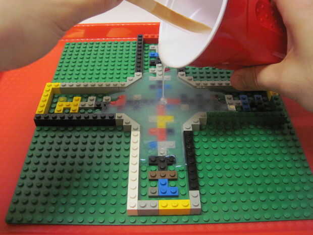 Si sólo tienes una placa base de LEGO disponible, ahora debe esperar 4 horas para el Ecoflex curar a temperatura ambiente. EcoFLEX cura en sólo 10 minutos a 150 grados Fahrenheit, pero no quiero saber lo que sucede cuando pegan mis LEGOs en un horno.