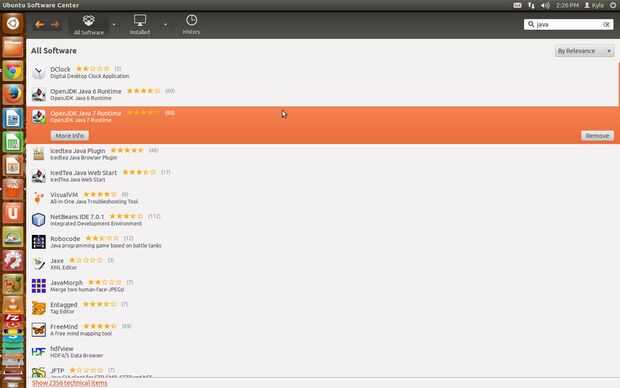 En primer lugar, debe abrir el centro de Software de Ubuntu. Ir a la esquina superior derecha, a la barra de búsqueda y buscar 'Java'. Usted debe ver la tercera o cuarta abajo es el OpenJDK Java Runtime 7. Asegúrese de que es versión 7 no 6. Instalar y va estar bastante para el siguiente paso!