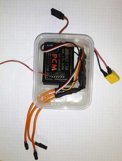 Este recipiente casa por lo menos el receptor RC, pero dependiendo de su configuración, pudo albergar la ESC también.