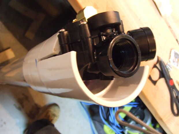 5. cortar un trozo de goma para caber dentro de la abertura roscada en la parte posterior de la valve.* de riego