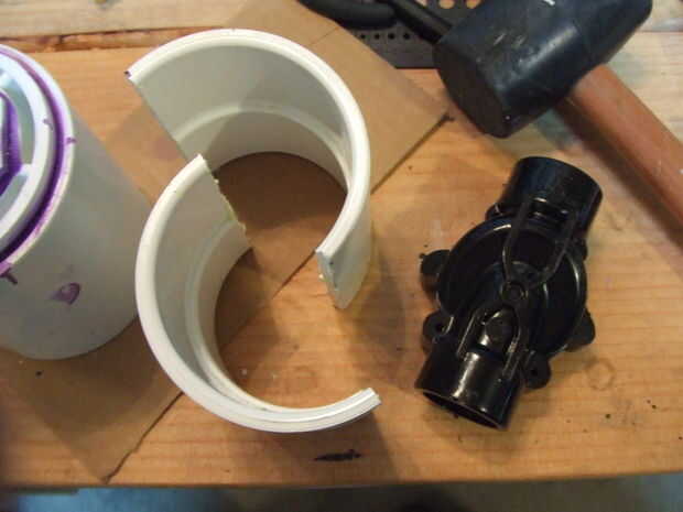 8. Corte la otra mitad del acoplamiento deslizante para caber alrededor de la válvula de lengüeta y schrader de la manguera.