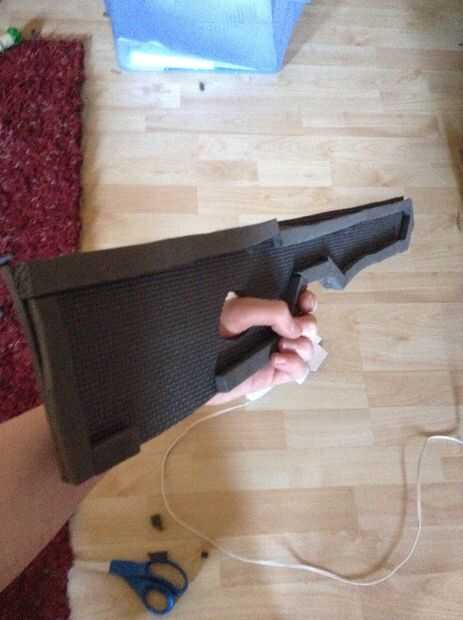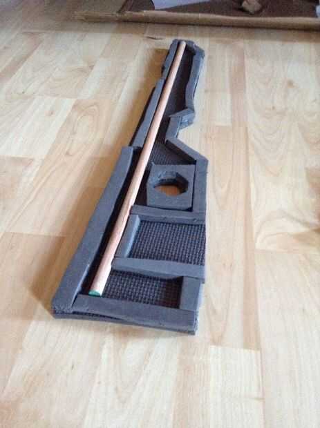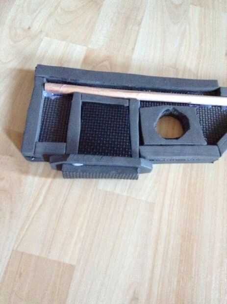 hola esta mi pistola bricolaje limpieza de la estaciónPaso 1: materiales Wood2 piezas de 1 "x 3/4"x 19"2 piezas de 1 "x 3/4"x 10"1 PC 10 "x 19" x3mmPinturaCapa claraClavos pequeñosEspuma de2 piezas de madera en form