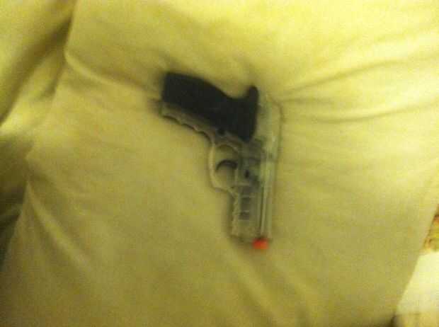 hace aproximadamente un mes en un juego de Airsoft, estaba tratando de limpiar la pistola de mi amigo y accidentalmente lo desmembrado. No preguntes.Fue sólo ligeramente agujereada 35$ pistola que él había tenido por un tiempo, por lo que realmente n