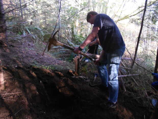 La siguiente parte es bastante obvia: cavar!. Esta colina había un montón de rocas y unas rocas de arenisca el tamaño de un ordenador. Se considera excavación a unos 3 pies si quiere profundizar, avanzar; es su trabajo. Se quedó sin luz y sólo puede cavar hasta aproximadamente 1 y 1/2 pies.