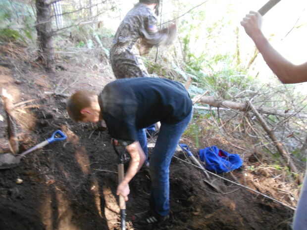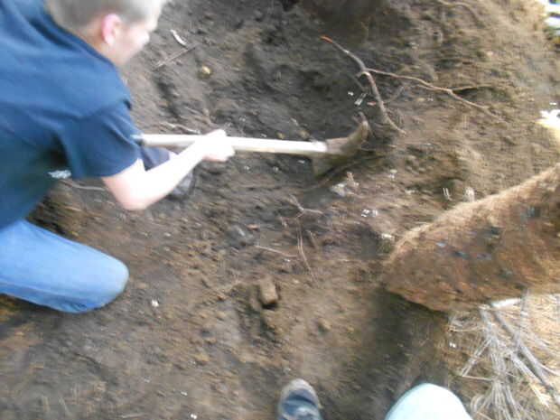 Después de eso, hay más cava. Normalmente, la excavación es más difícil va abajo, y el agujero es más estrecho. Asegúrese de que al ampliar el agujero cada ahora y entonces.
