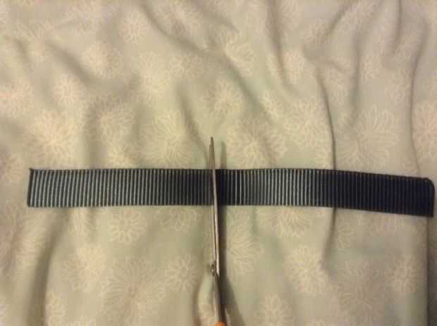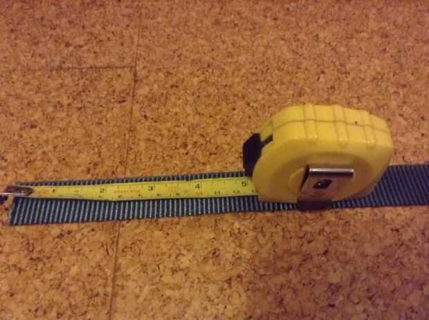 Golpear hacia fuera la cinta métrica y mida 5" de la cinta. Marcar con el dedo donde tiene que cortar, o como alternativa utilizar un marcador. También puede utilizar los cantos del material como una línea de corte a lo largo. Empezar con las tijeras, puede encontrar usted puede cortar la mayoría de la manera antes de que usted tiene que ajustar la posición de las tijeras pero no importa si el corte no es perfectamente recto. Ahora tienes tu pieza de cinta podemos pasar al tercer paso.