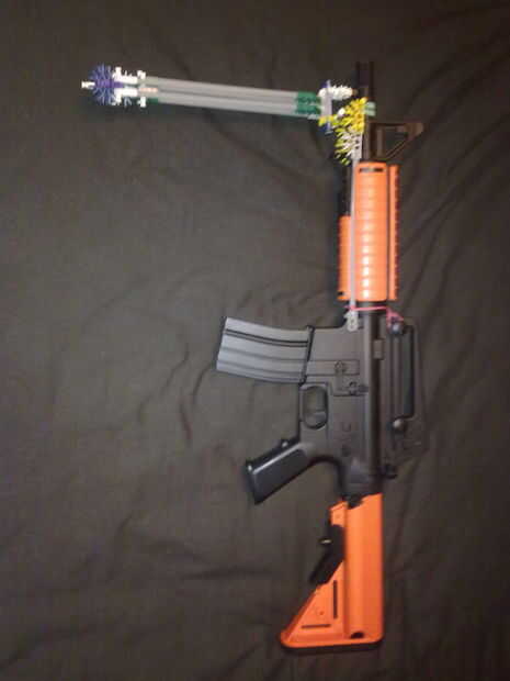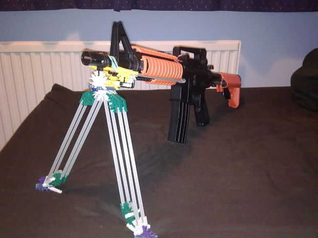este es mi muy básico alcance K'nex ACOG, inspirado en la guerra moderna. Está construida principalmente de conectores rojo rotos pero es bastante bueno en su trabajoPros:Se ve bienSimpleRetículo regulable de estilo M16Buena visibilidadContrasNo a ve