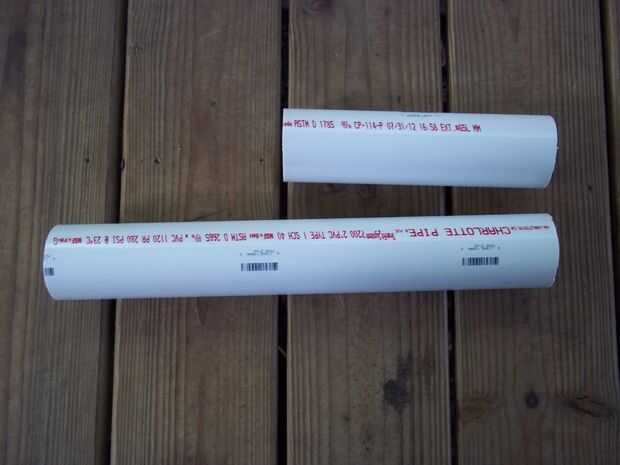 Esto es donde usted puede elegir. Una sola pieza es el cañón y el otro es su cámara de aire. Usted puede cortar uniformemente si deseas, o tener una cámara corto y un barril largo. Hemos encontrado un barril más corto y un compartimiento más largo funciona mejor.