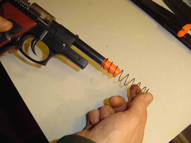 Lo que estamos haciendo aquí es usando la arandela y la tuerca para reducir con eficacia el resorte comprimido, lo que es liberar más energía a medida que se expande cuando el gatillo.