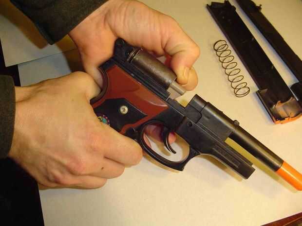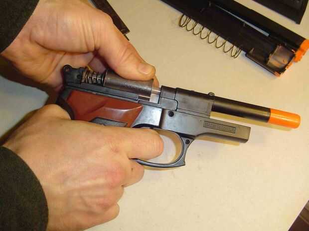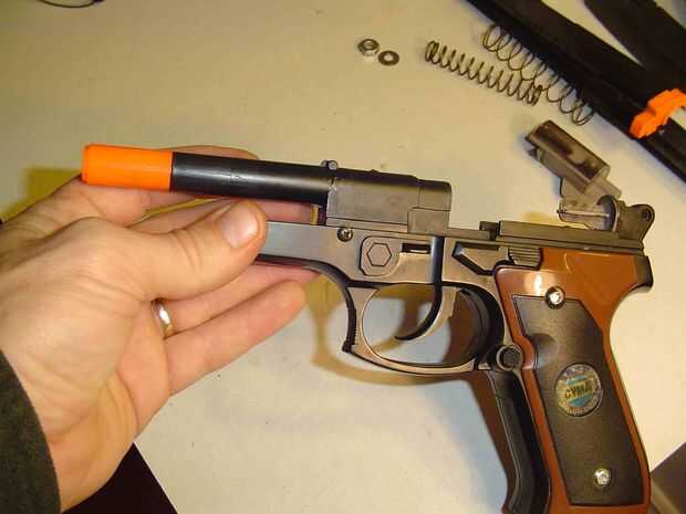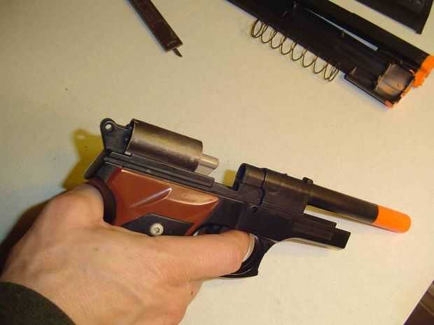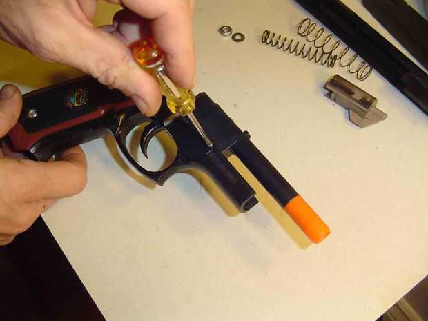 Deslice el muelle de carga mayor sobre el culo de barril. y reemplazar el alto armado parte de las mitades de la pistola y listo totalmente.