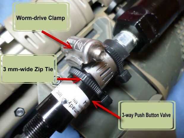 Paso 5: Grenade Launcher modificación - montaje de válvula de pulsador y regulador