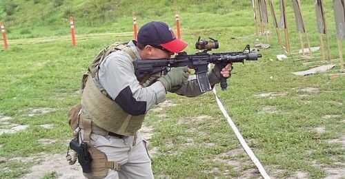 Esta foto ilustra perfectamente la forma correcta en un táctico, listos para posición. Esta posición hace fácil moverse en una posición de cuclillas.