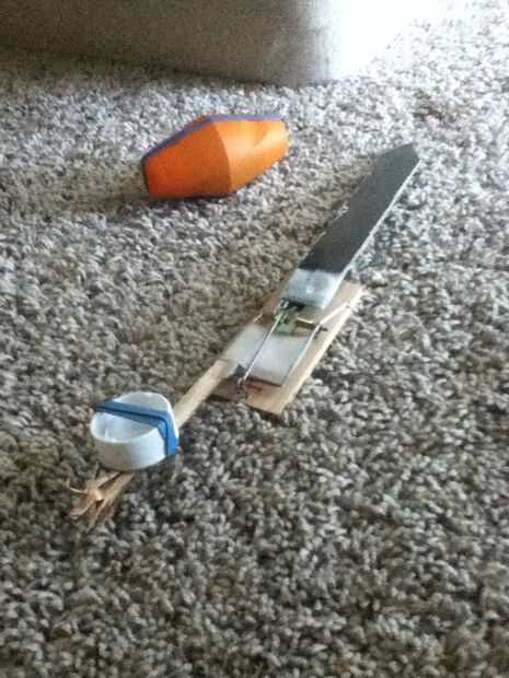 este es un genial tripwire activado no pirotécnicos (así produciendo ningunas emisiones peligrosas de fuegos artificiales) trampa usando la energía potencial de un resorte, también conocido como una trampa para ratones. está muy bien, y consigue un r