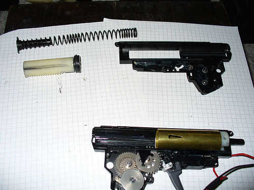 La actualización de primavera es la manera de actualizar la fuerza dispara su arma. Sin embargo la actualización de primavera causa mayor estrés en todas las partes de la caja de cambios. ¿Quieres la lista de técnica? Pistón, engranajes (rectos, Sector, bisel), bujes, placa de empujador, guía del resorte, motor, todo. Cada uno de ellos deba actualizarse para manejar un resorte más fuerte. Hombre, he escuchado de reductores todo de la gente se agrieta bajo la presión de los resortes fuertes ultra y tensión interna.