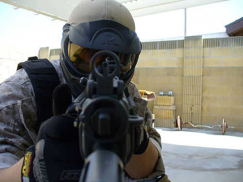Su cabeza debe escanear a través del juego y muchas veces será la parte más pequeña de cuerpo permisible que debe estar expuesto al disparar. Hay varios jugadores de paintball y airsoft que no apuntan directamente hacia el ironsights, en cambio con el objetivo por el lado de la pistola, de esta forma puede disparar sobre cubierta más alto que es posible a través de ironsight apuntando. Personalmente no me gusta hacerlo, pero si yo estoy operando en una situación baja luz con una linterna, hago lo mismo con el fin de ver mejor el camino de la bb.