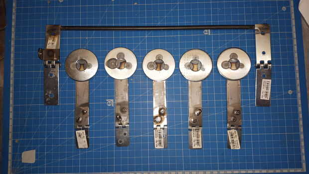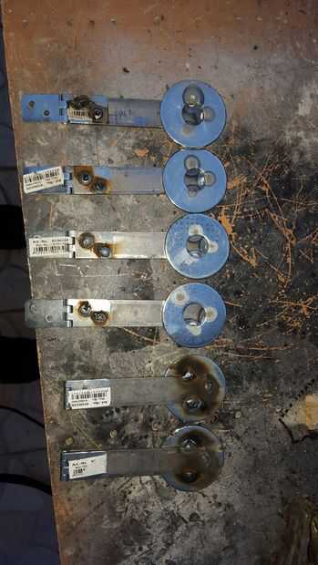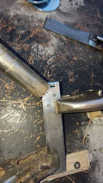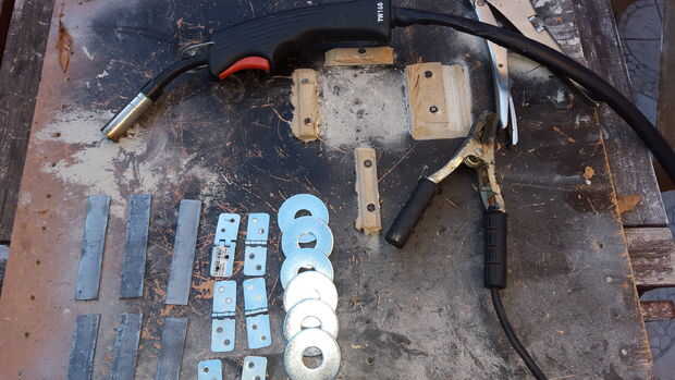 Luego había soldado una arandela y una bisagra en cada barra utilizando un soldador de mig.
