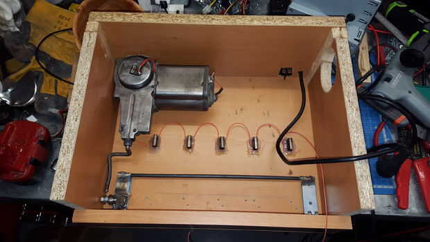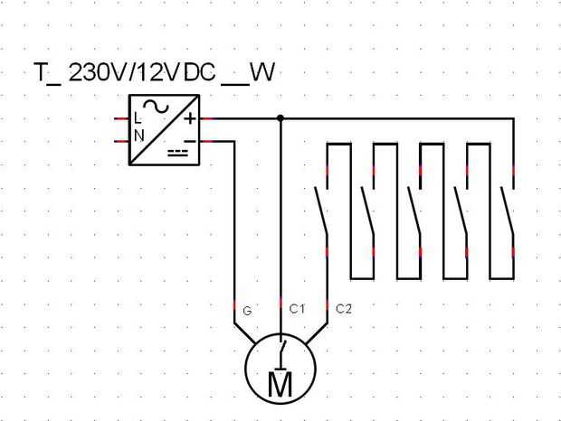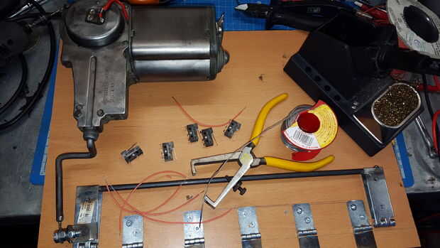 Aquí, reemplacé el contacto habitual por cinco microinterruptores en serie. Cuando todos los destinos, empujan las palancas de microinterruptores y los 5 contactos están conectados. Así que el motor va para su ciclo completo.