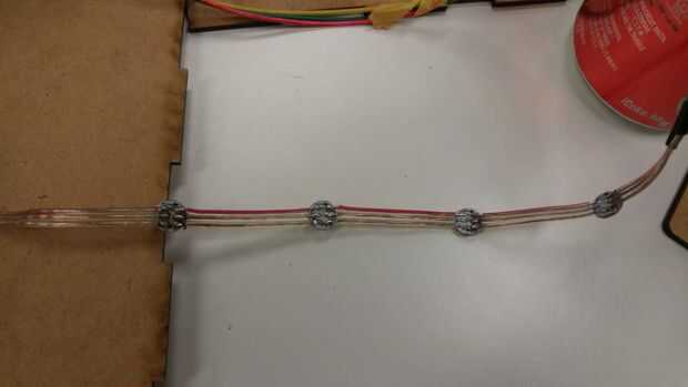 Igual que arriba, conectan 4 luces. Deje los cables en los 2 extremos a cada lado para conectarse a la placa Arduino en el paso 4.