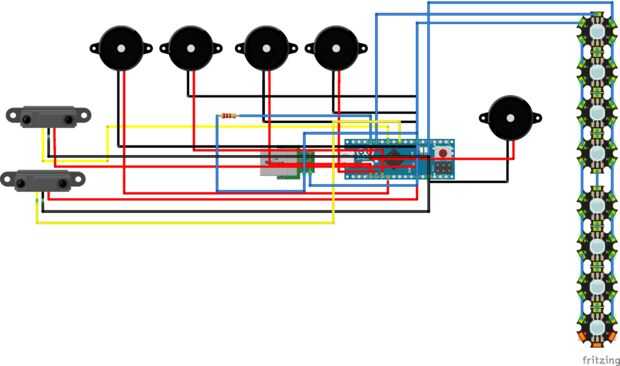(5) y el resto en ninguna orden particular. Sirvase tomar como referencia la longitud del cable cuando suelde. Como se puede ver en el vídeo del montaje de la caja, el cable es largo porque los sensores y LED luz tendría que correr a lo largo de la caja en lugares específicos por lo que la longitud es necesaria.